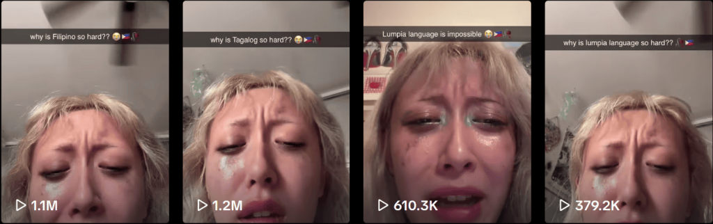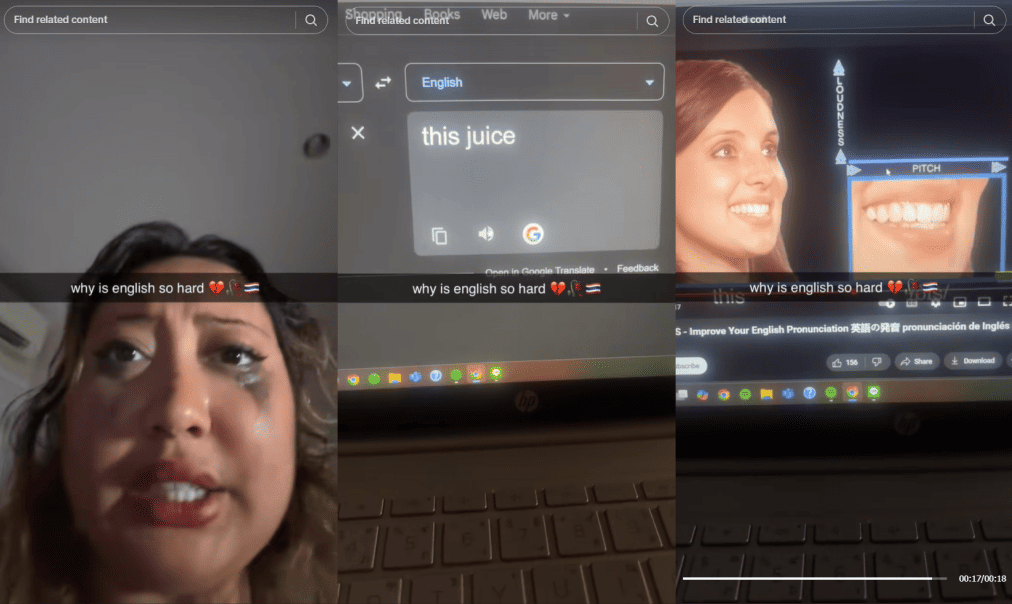 She recorded herself crying while trying to pronounce “this juice” and failing miserably, even with the use of an youtube pronounciation video.