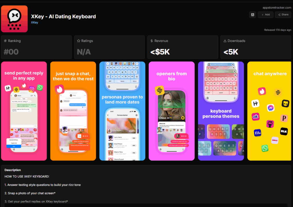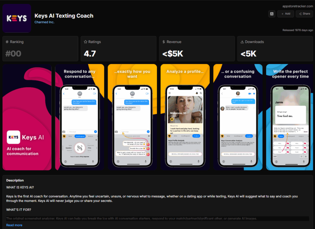 Now, the charts battle in the AI conversation assistance niche (or the “digital rizz” market) is centered on two iOS apps that turn the keyboard into a messaging coaching tool.
