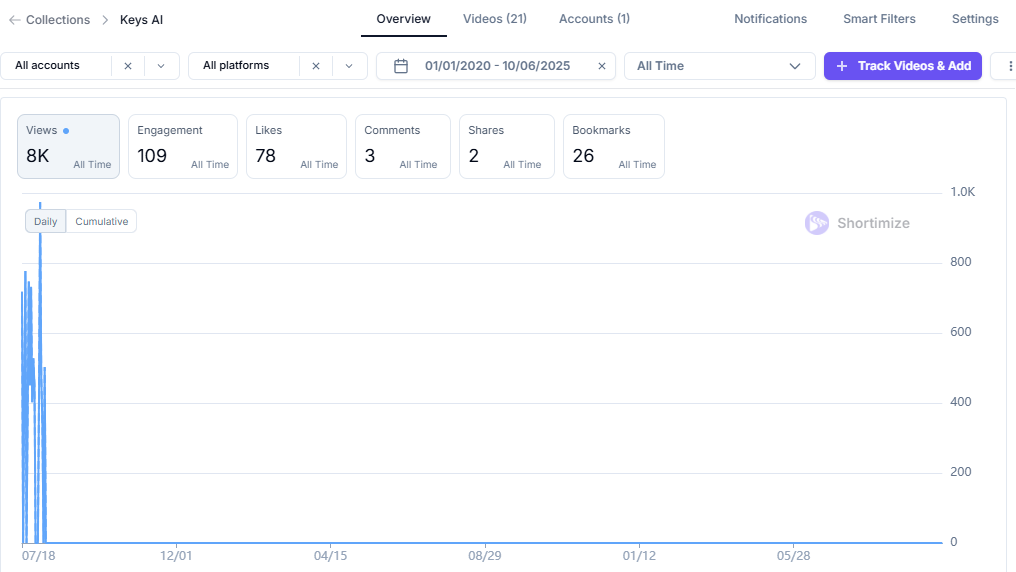 The pioneer, Keys AI, launched a single account in July 2023 but quickly abandoned it one month later, resulting in just 8K total views…