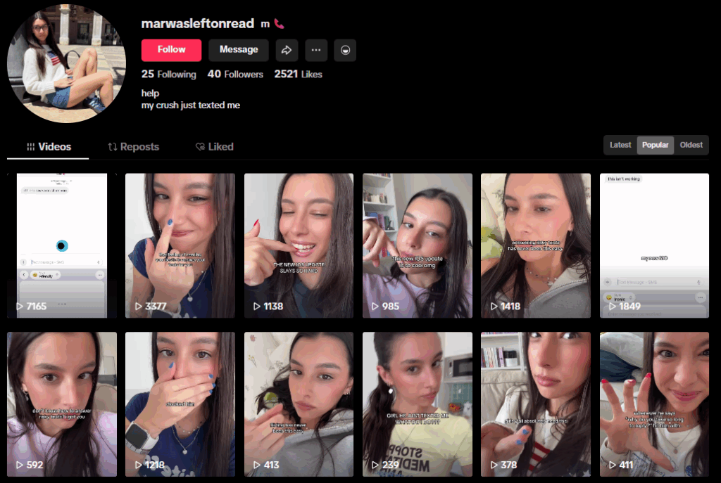 Both are posting the traditional Gen Z UGC mix: short silent clips with face close-up, followed by an app demo.
