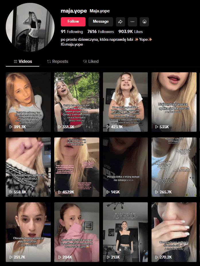 Yope’s strategy on TikTok and Reels lies in… sheer volume.