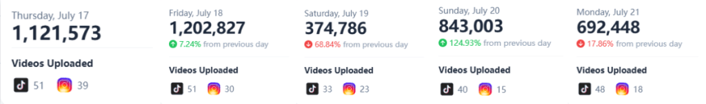 They post an average of 69.6 posts every single day across TikTok and Reels.