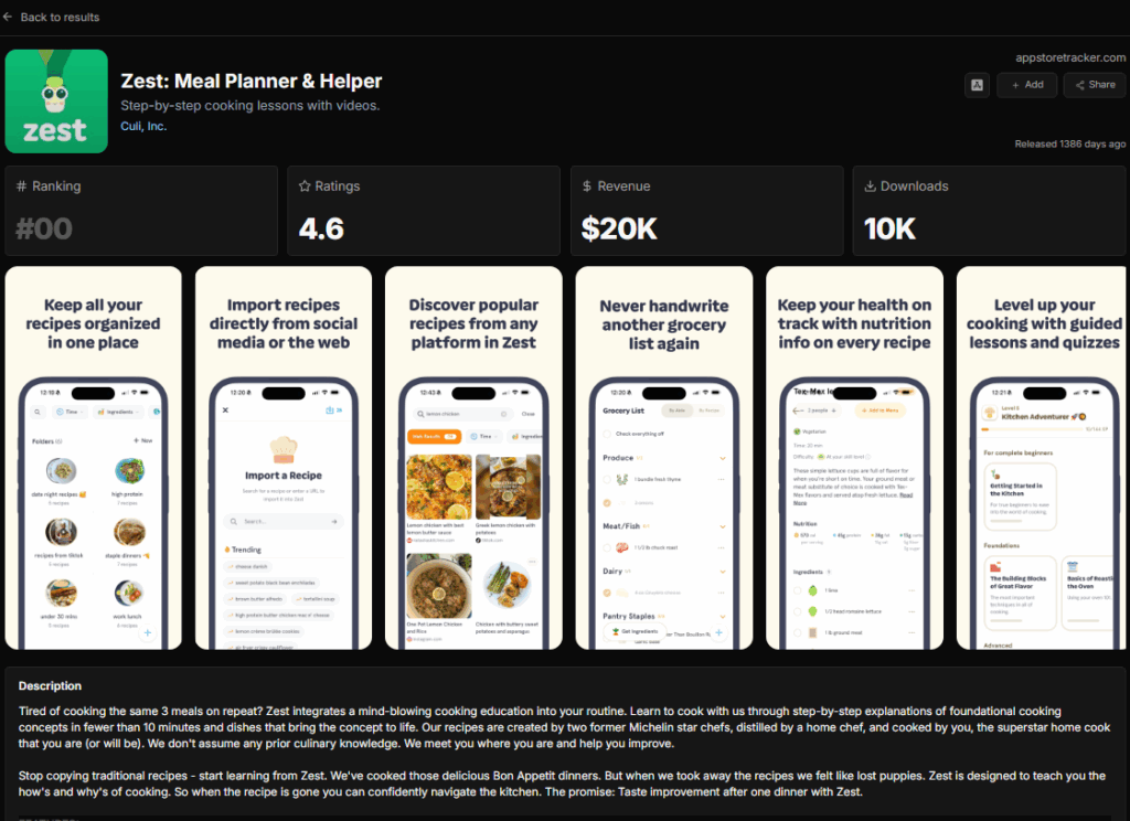 Zest launched in 2021 to make cooking easy and fun for everyone. With quick videos and clear step-by-step recipes, the app helps people feel more confident in the kitchen, minus the pressure.