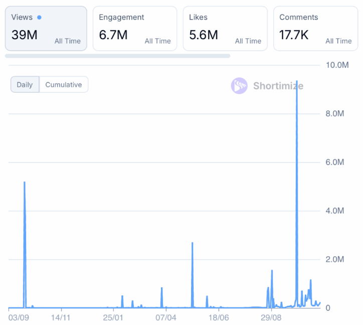 They’ve hit 39 million lifetime views, with some clear peaks, and 7 million views in the last 30 days alone.