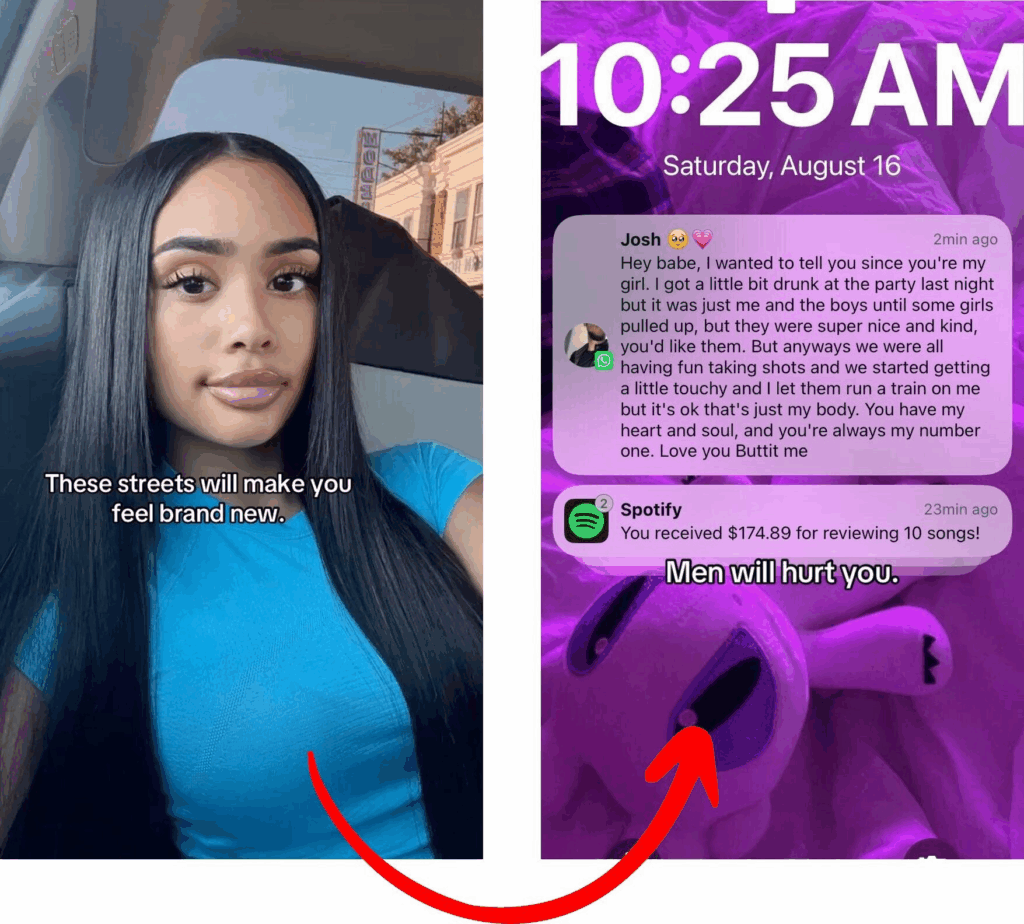 Check out this post, from the same creators as the picture above. Attention is triggered with the cheating confession, but have a look at the comments. No one cares, all eyes are on the notification: