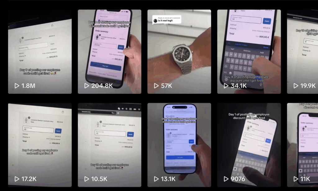 People can’t resist a secret or a deal that feels too good to be true. So if you show up as an insider from a brand or store, “leaking” a discount that’s not public (or not even supposed to exist), people will pay attention and want to try it.