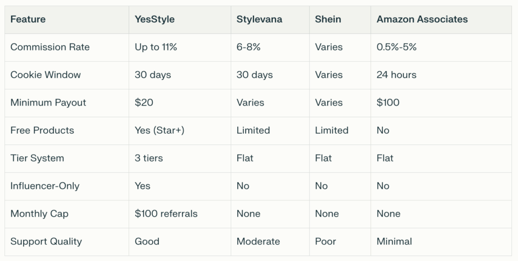 Almost all of them display “YesStyle” in their bio. Many promote dozens of other products but YesStyle stays at the top because they have the most aggressive referral system. This is how they win in a very crowded beauty market.