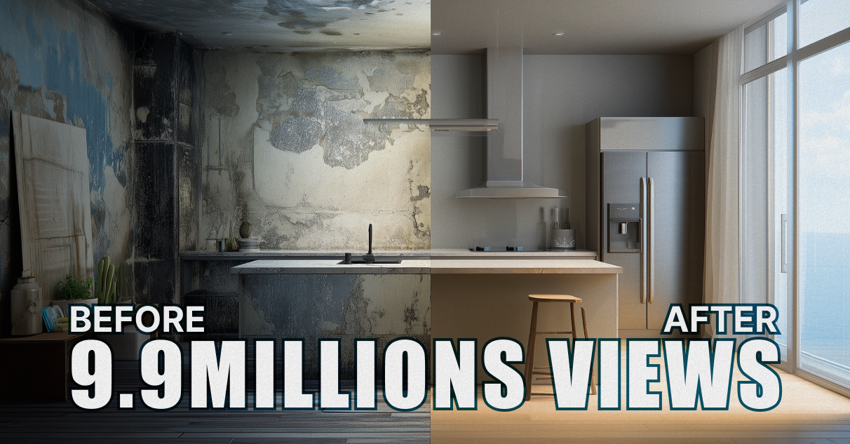 She sticks to the same format for these videos, a slideshow showing the renovation step by step, from before to after, with each slide including a short hook that explains what’s going on in the photo.