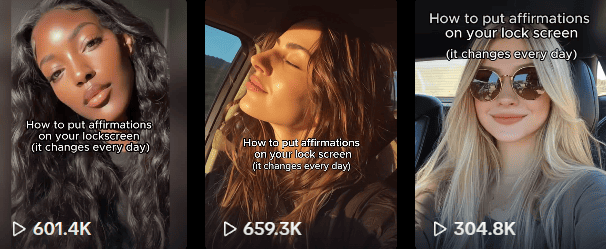 Everything centers on the hook: “How to put affirmations on your lock screen (it changes every day).”
