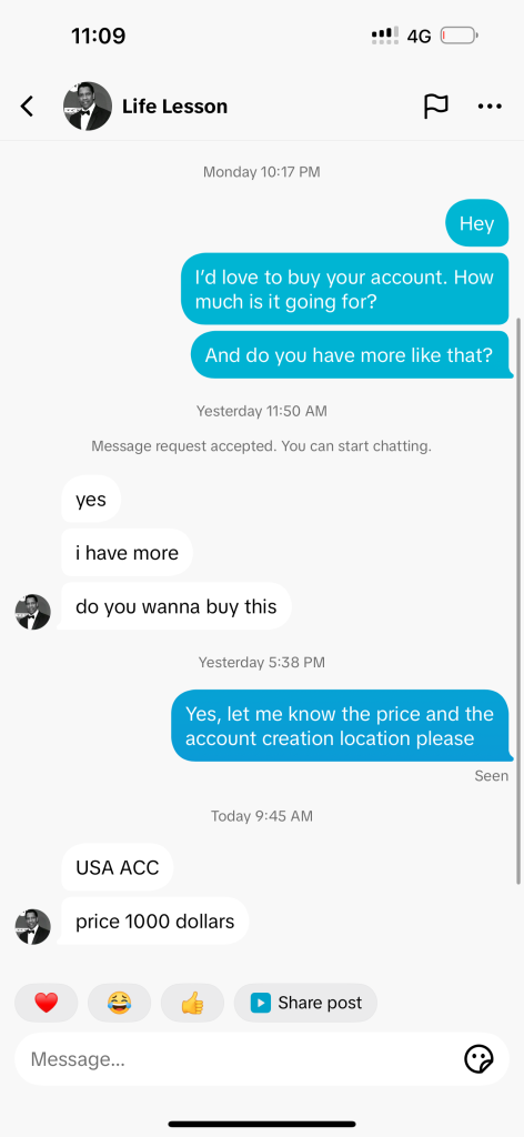 I DMed the guy to ask how much he’d sell it for (pre-negotiation, convo’s ongoing).
