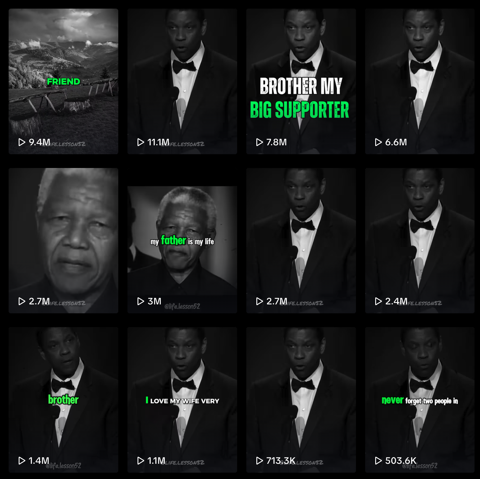 The first 2 seconds are always the same clip, with Denzel Washington’s face.