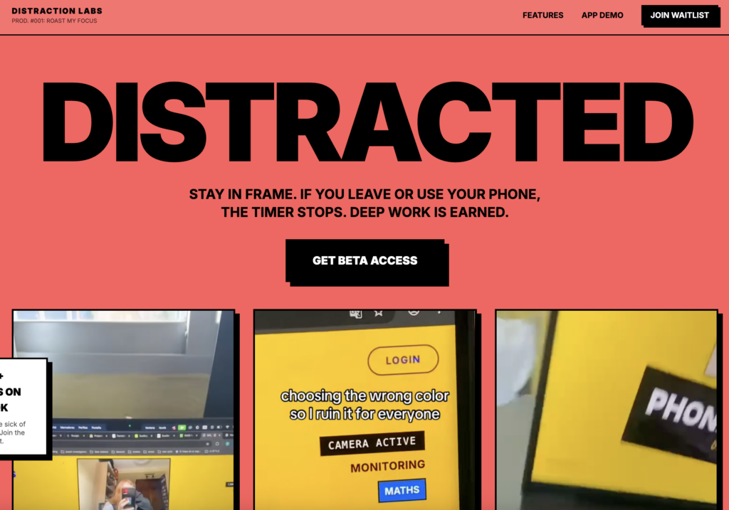 Her third video almost hit a million views, and the app idea is incredibly smart. It watches you and literally screams if you leave the frame or grab your phone.