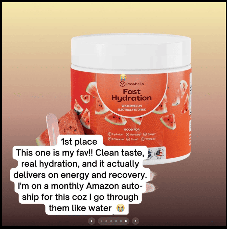 Rosabella, an e-com brand known for their aggressive “moringa” marketing, spotted the format and turned it into an ad machine for their watermelon electrolyte drink.