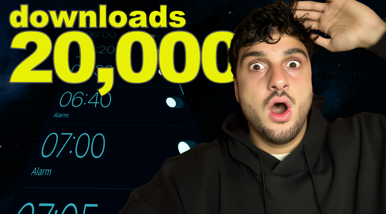 A 4-month old alarm app already at 20,000 downloads and $9K/mo, with a 2.4M-view video from four days ago on a brand new account.