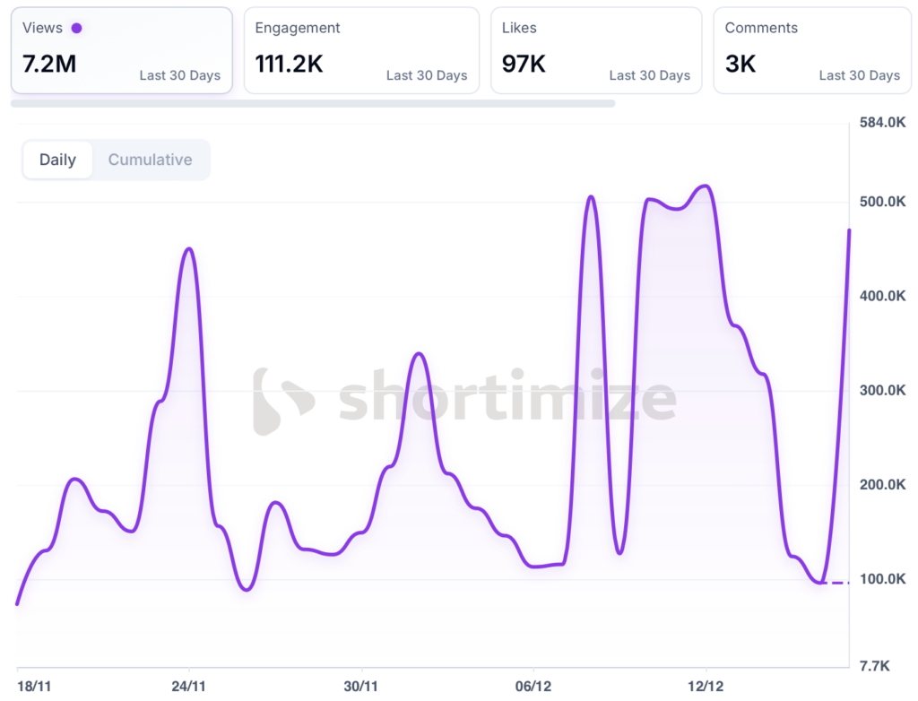 Not viral spikes, but consistent momentum. It lets them post frequently without forcing every clip to be a full on cheating storyline.