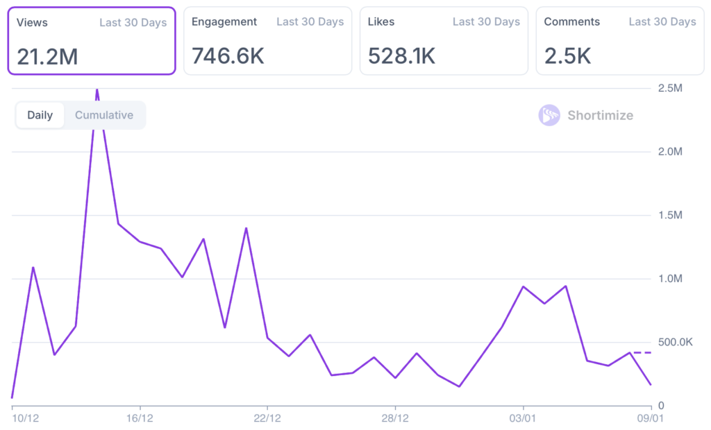 Now they just hit 21.2M views in the last 30 days and most of it came from one faceless video.