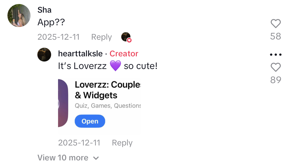 When we last covered Loverzz (Dec 4), the app was sitting at 16.9M views driven by rage-bait questions and “cute widget” POVs.