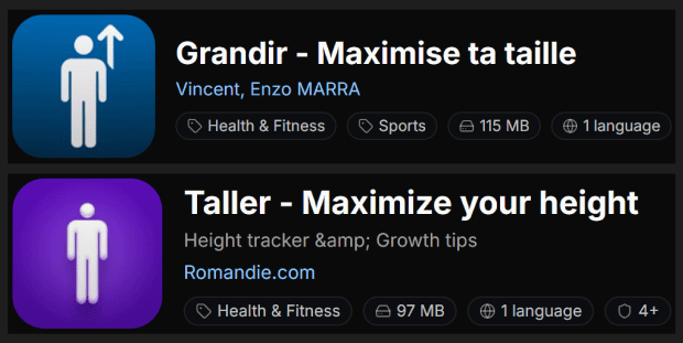 Now, someone cloned the Taller app in French and hit #6 in Health & Fitness.