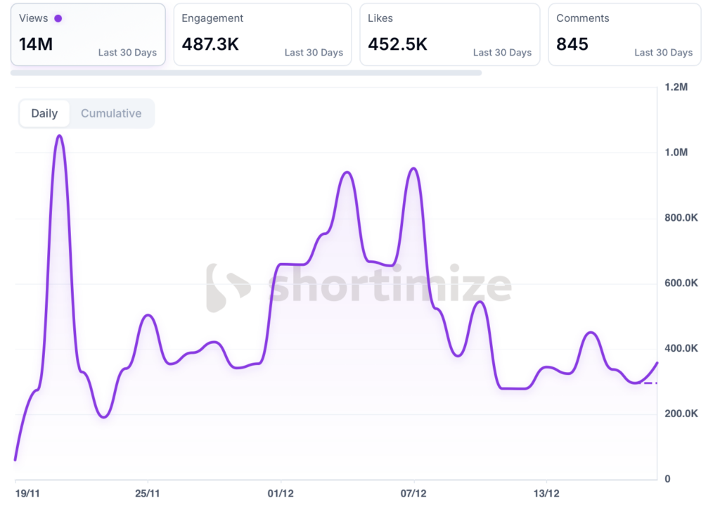 You can track their accounts here: https://app.shortimize.com/c/2b107lgIjrLIP5
