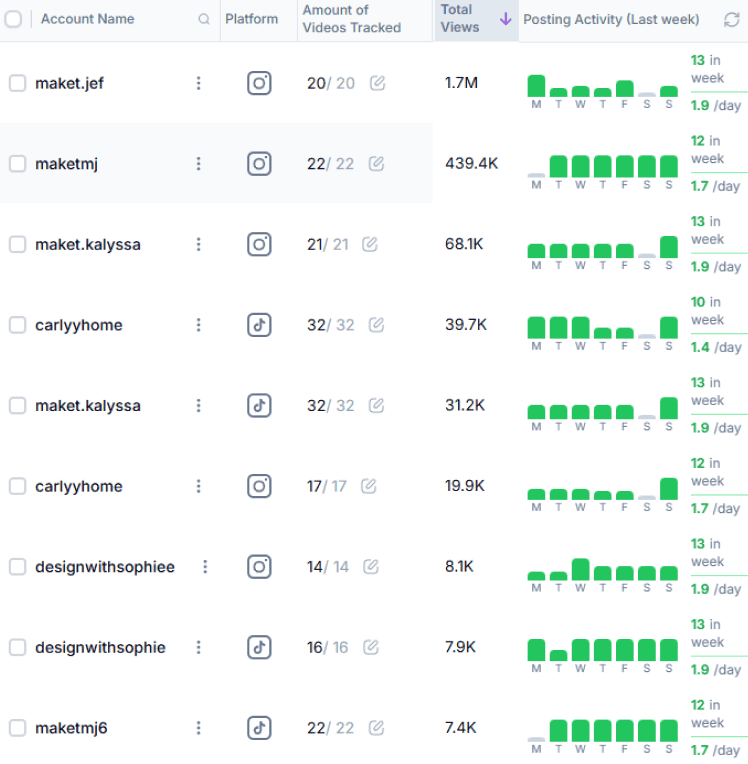 So far, the team appears to be working with five ambassadors, each posting on both Instagram and TikTok. On average, they are uploading around twice a day per account.