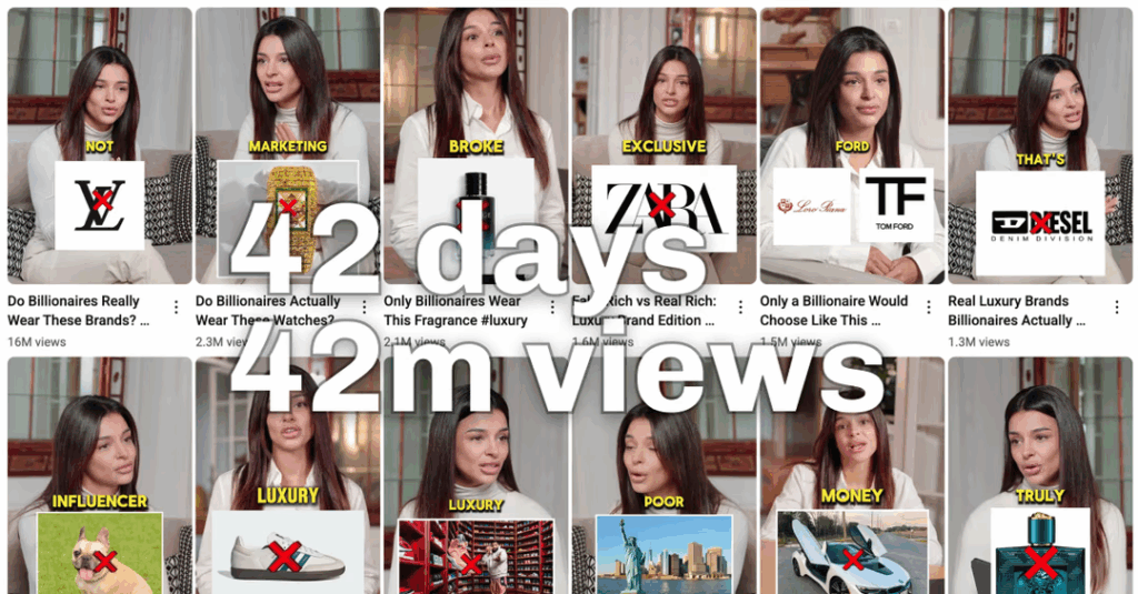 Just look at InsideLux. Their whole strategy was built on smart iteration, consistently repeating the exact same AI-generated format and script over and over again, simply swapping brands and places that were mentioned. They pulled in 42M views in 42 days.