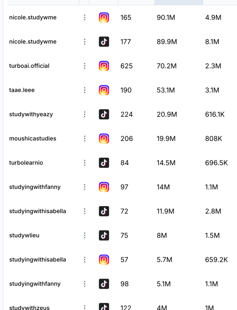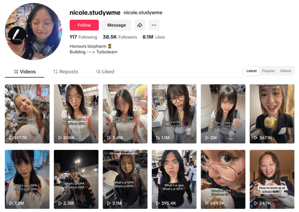 We have tracked 101 TurboLearn accounts over the last 12 months. The company, launched in 2023 after a $750K seed round, has relied almost entirely on this kind of UGC to reach its current level of 4M users.