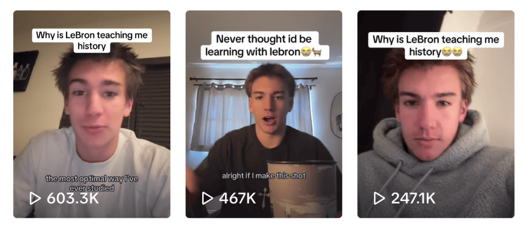 Other formats work just as hard. The team borrowed the “I made a website called…” meme from another study app and remixed it into “I made a website called ???? x LeBron James the professor”. They paired it with learnwithlebron[.]com, a landing page that turns PDFs into “brain-rot” flashcards.