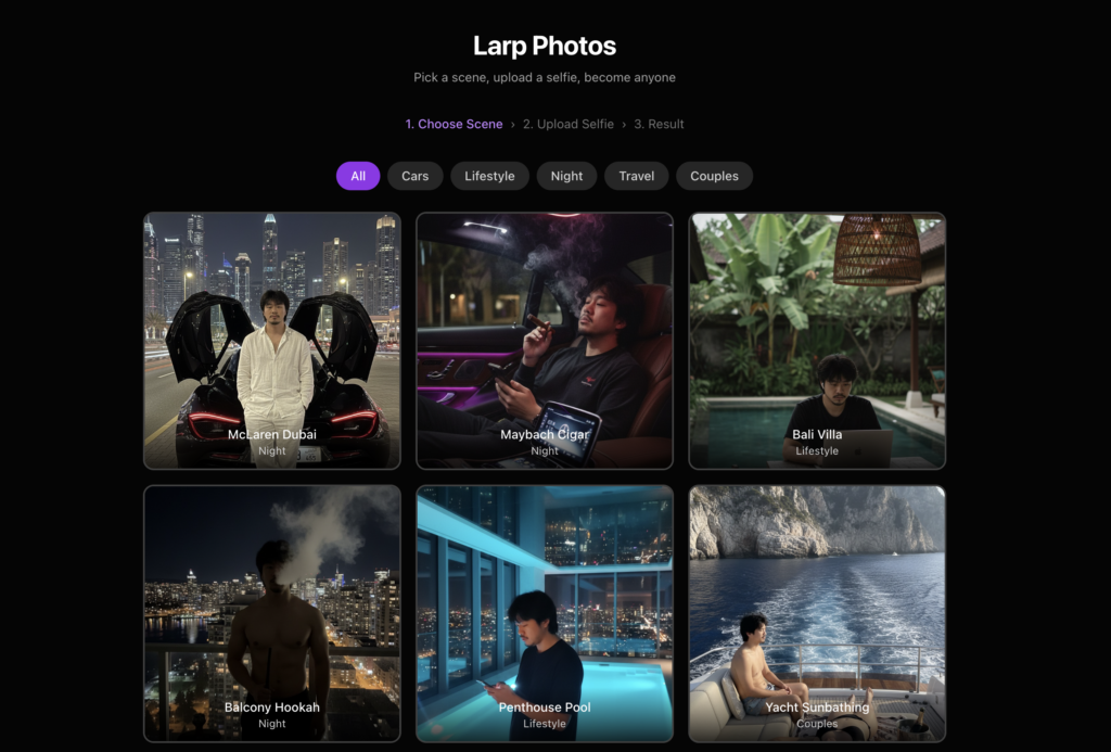 This guy adapted a trend where youngsters were generating and sharing Gemini prompts to show themselves in Lambos and penthouses into an AI wrapper called LarpGPT, and with only 2 weeks of videos, he’s crushing it.