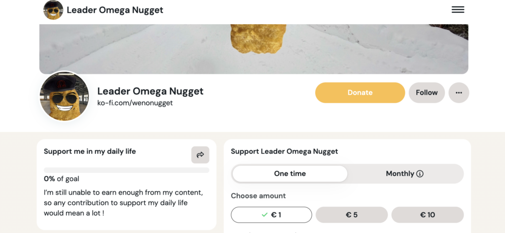 In the bio, there’s a CTA link that sends people to a Discord server and a donation page, but even with millions of views, the Discord only has 1,136 members and the donation page hasn’t been used at all.