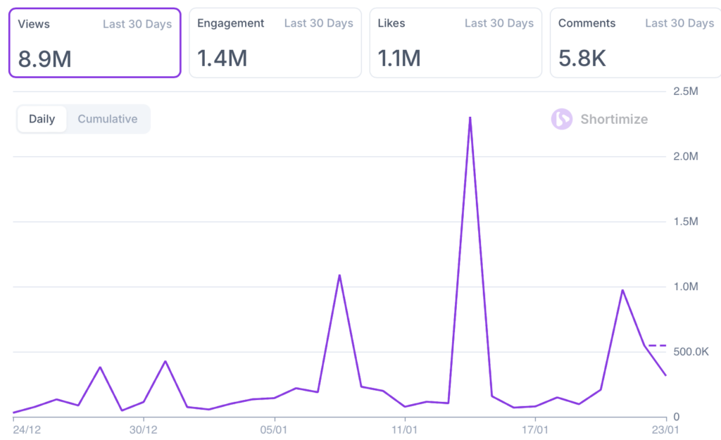 One with a slightly different hook but the same “shock” reveal pulled 663.9k views