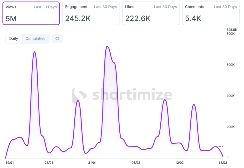 This month, they pulled 5M views with 10 accounts posting at least once a week.