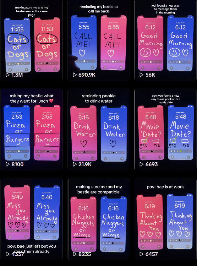 This format has become a strong growth engine for long-distance relationship apps because the feature itself is the demo. Viewers instantly understand what the app does in the first second.