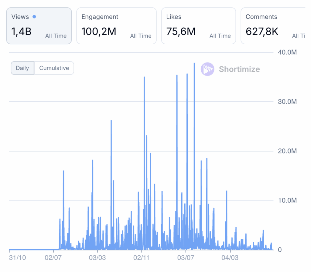 The account has been around since 2021 and has already racked up an incredible 1.4 billion views.