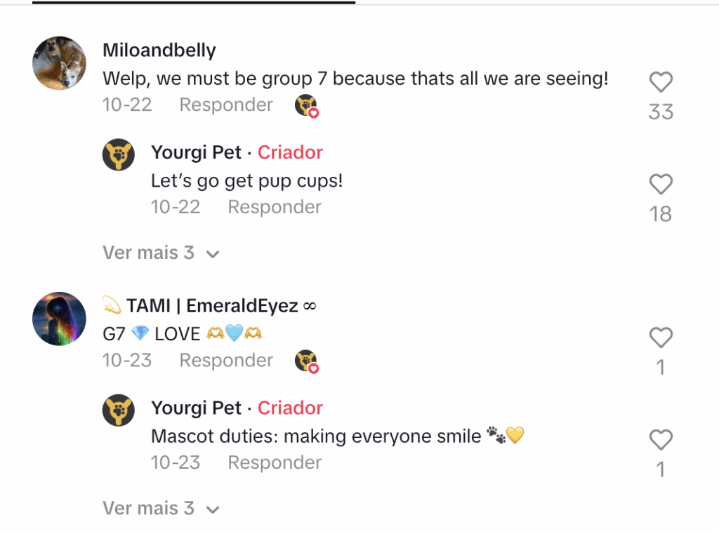 The app often picks a comment and posts a video reply, keeping the comment visible on the screen and adding a hook, as if the dog is the one talking.