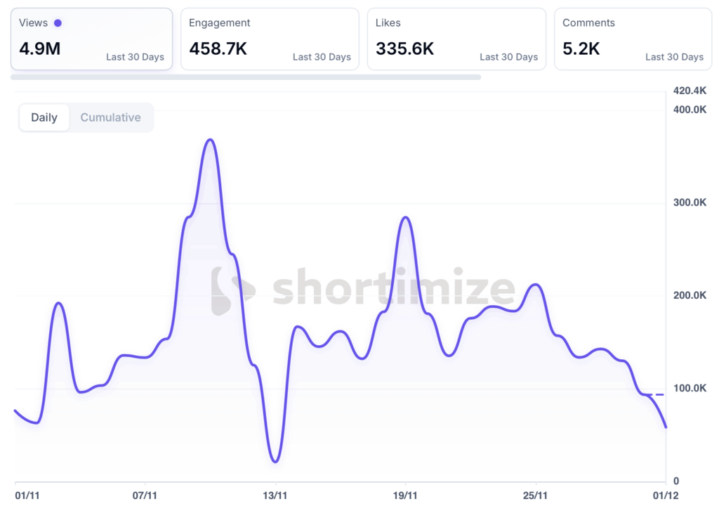 Two weeks ago, we broke down Studley’s strategy, when they were sitting at 152 million total views and pulling roughly $50,000 in monthly revenue, with a growing creator network and a handful of winning formats.