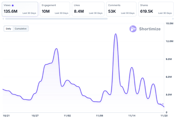 - 135.6 million views in the past 30 days alone.