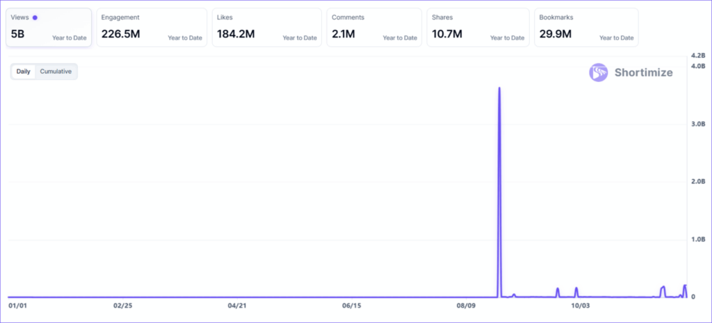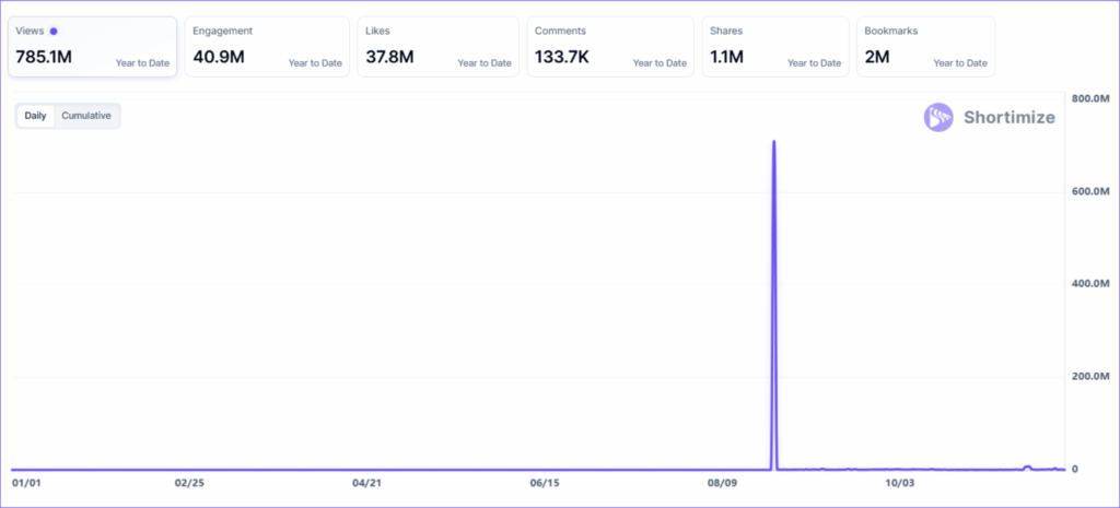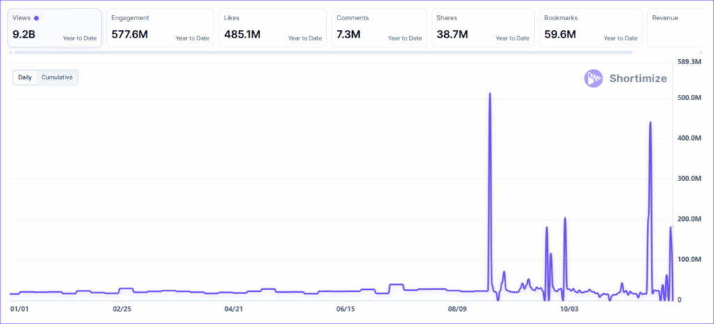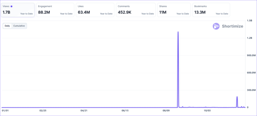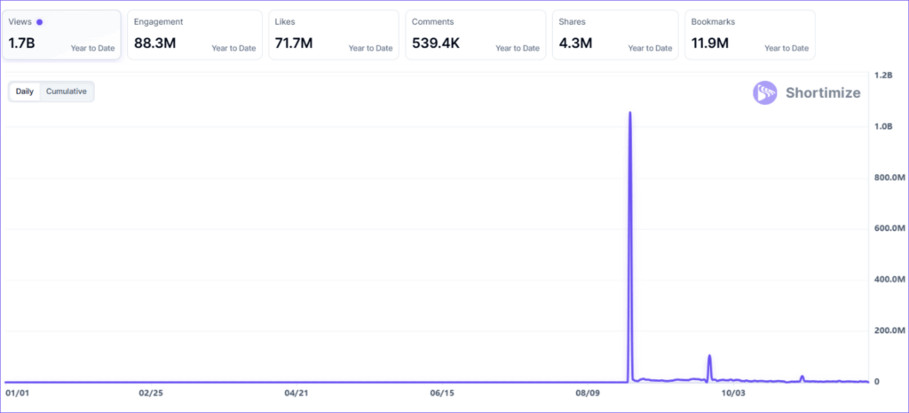 With 46.2 million views, it may not top the charts, but its strong engagement shows a deeply loyal niche audience. The founder, who now runs multiple creator accounts, turned her brand into a growing creator network.