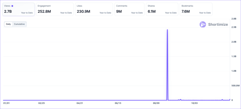Fit With Coco (a founder-led account) turned fitness coaching into a full-on viral movement in 2025. With nearly 950 million views and 16.7 million engagements, Coco proved that consistency really does pay off.