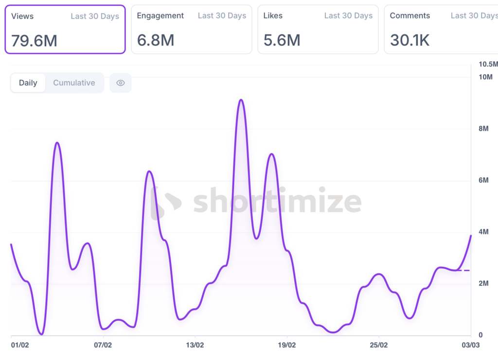 They grew fast and have been pushing one format ever since: one prompt, one text reaction, millions of views.