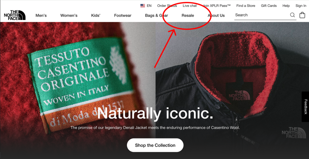 Clicking it takes you to a platform where The North Face is clearly trying to own and control its secondhand resale market.