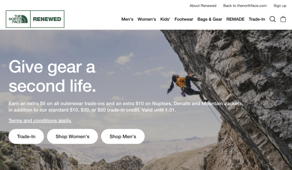 Not their main retail business, but their circular thrifting platform called The North Face Renewed. At the top of their website, there is a “Resale” button.