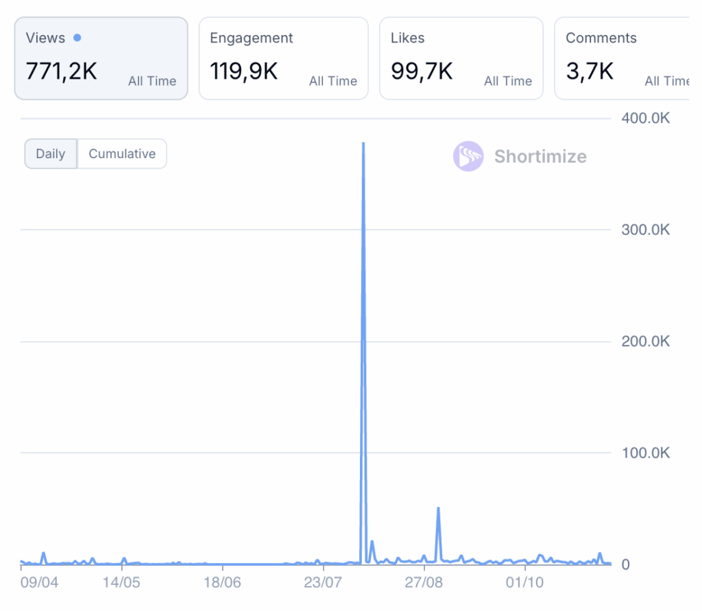 The app runs three accounts and has reached 771.2K views.