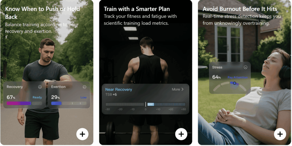 An apple watch AI personal trainer that measures body battery, recovery, exertion and HRV.