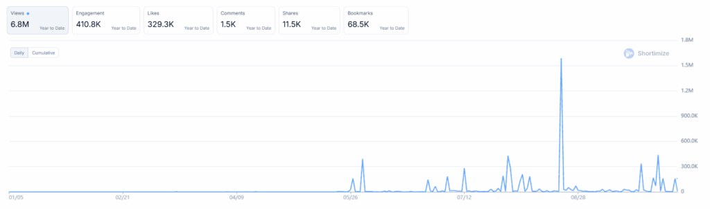 6.8M views since they started uploading in the end of May 2025.
