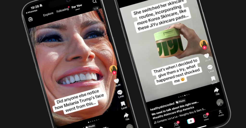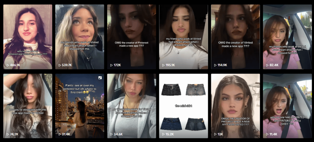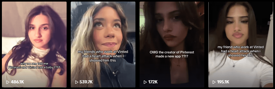 But there’s a hidden hack; it seems like these videos are not the face of a creator. They are clips of random (attractive) girls from other TikTok videos. They simply cut them and use them as an intro for their own app: