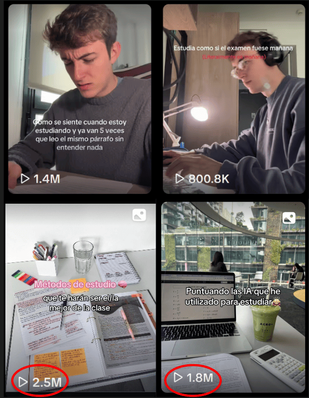 An AI study tool is starting to lift on SpanishTok through two channels: a face-to-camera UGC wave, and a parallel faceless wave.