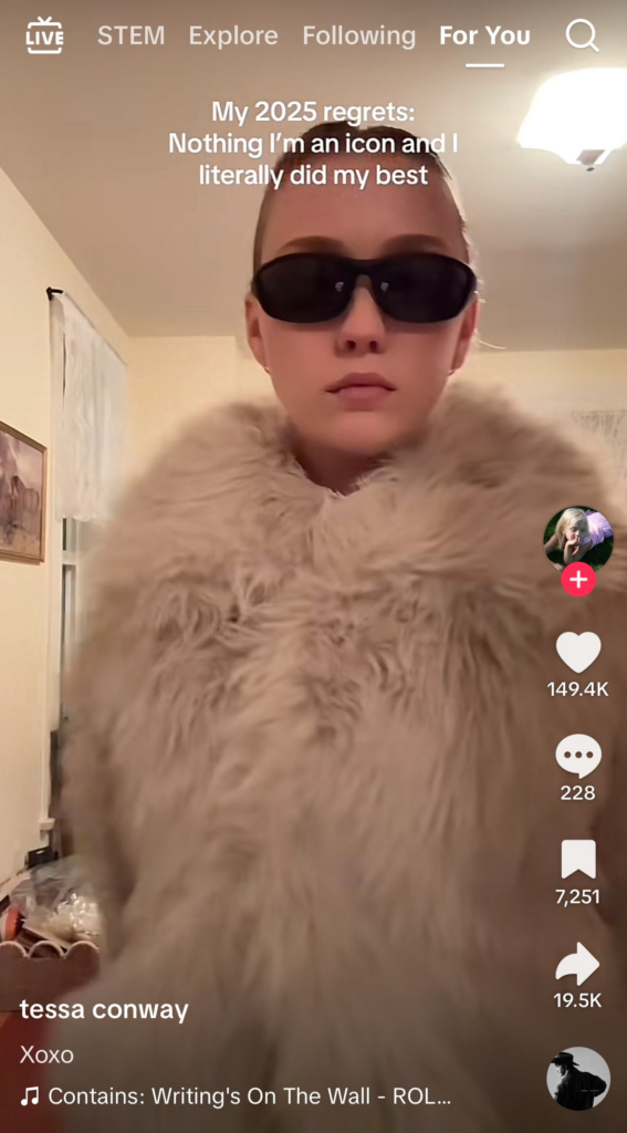 Just like this creator did in a video that passed 1M views → “My 2025 regrets: nothing. I’m an icon and I literally did my best”