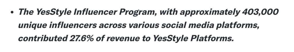 Creators post content about the products and place the link in their bio. Many put it at the very top. This gives them passive income while YesStyle gets traffic from hundreds and even thousands of bios.