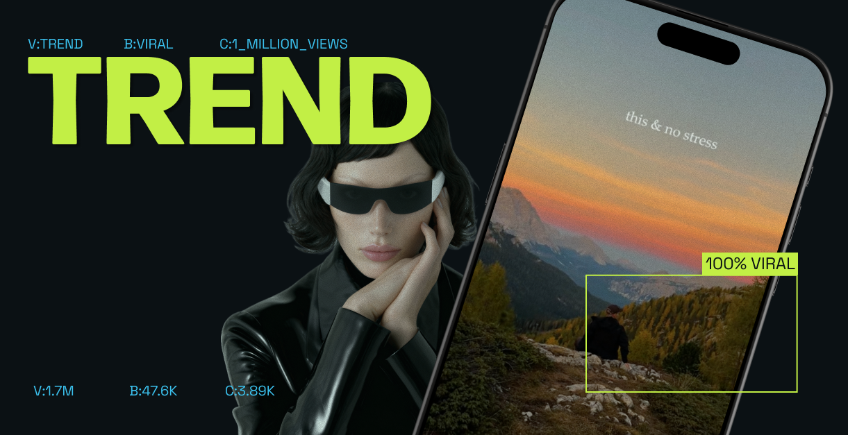 Creators slap “this & no stress” on a cinematic shot (ocean, sunsets, mountain view, city night, girls trip) and it prints.