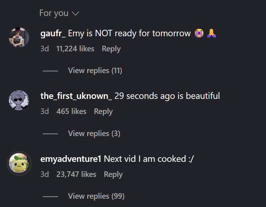 Then, they get the creator to comment as Emy, feeding into the buzz (23K likes on a single comment).